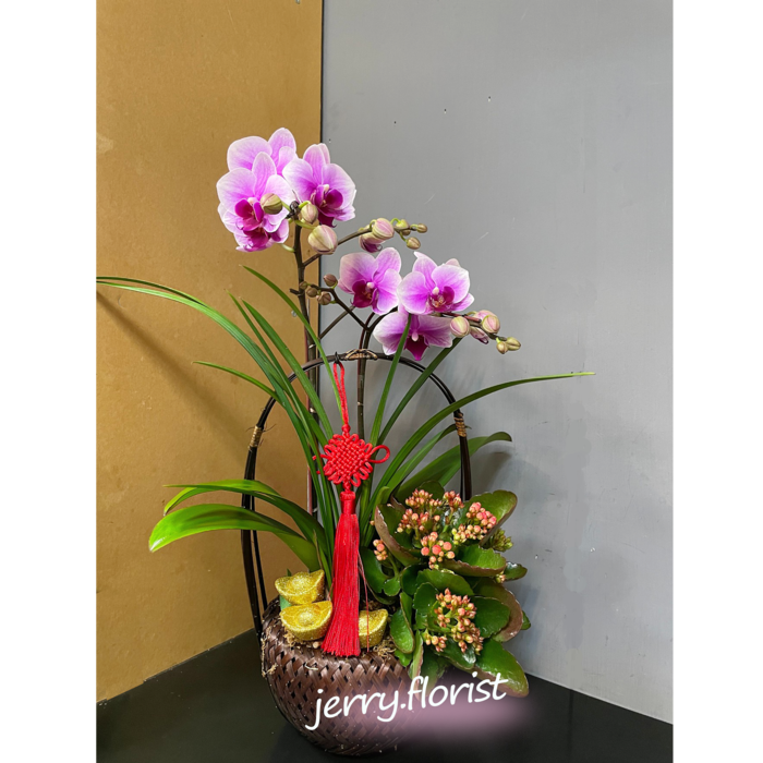 福氣籐籃蘭花組合