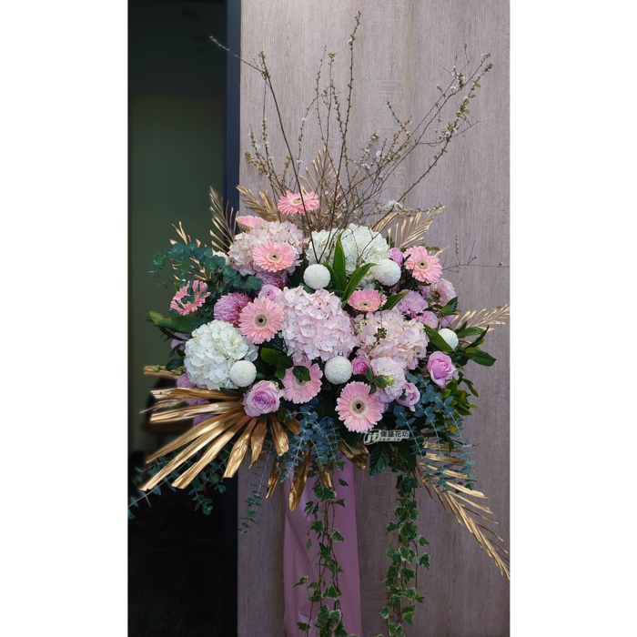 #一個花籃《主材》繡球 玫瑰 牡丹菊 乒乓菊 尤加利 太陽花